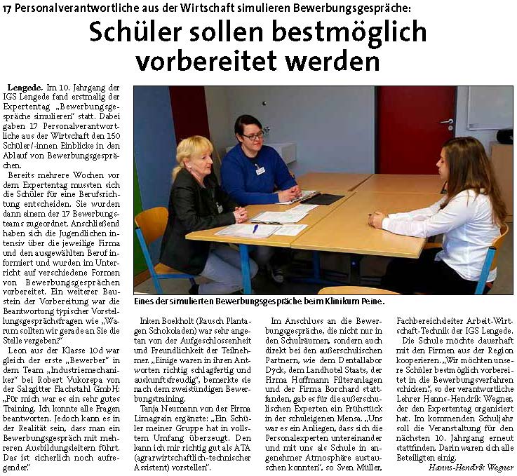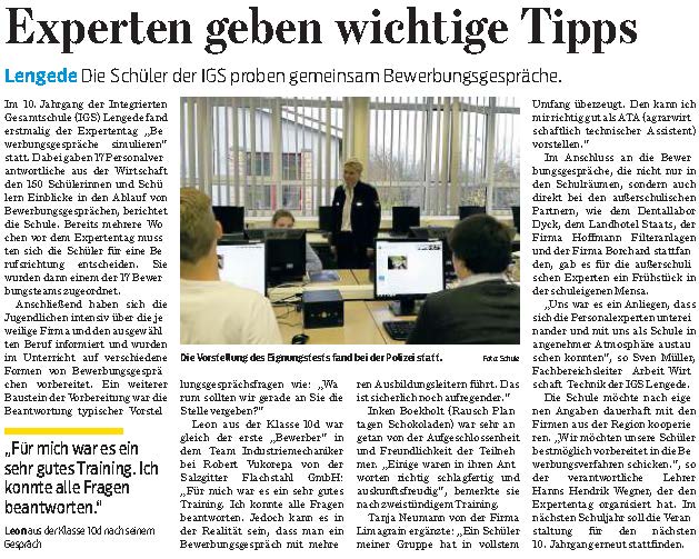 PAZ: "Schüler der IGS Lengede probten Bewerbungsgespräche"