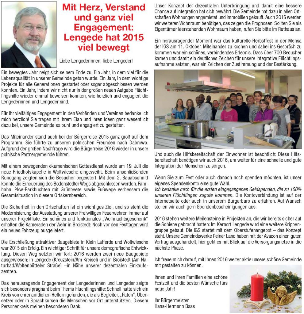 RSB: "Mit Herz, Verstand und ganz viel Engagement: Lengede hat 2015 viel bewegt"