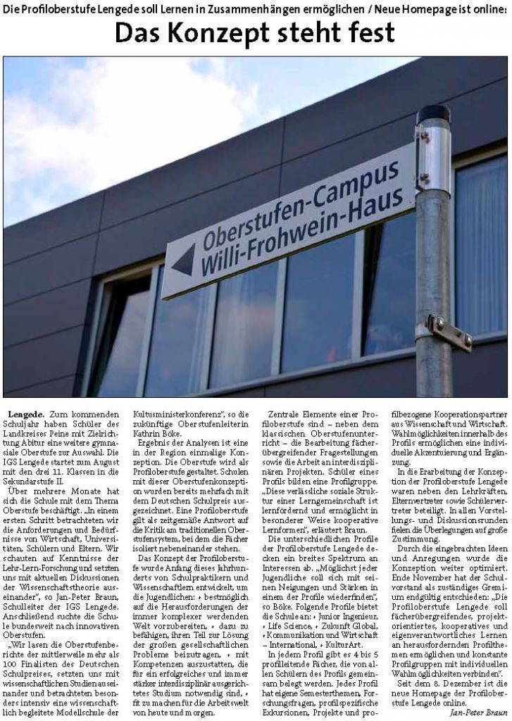 PAZ: "Das Konzept steht: IGS Lengede plant eine neuartige Profil-Oberstufe