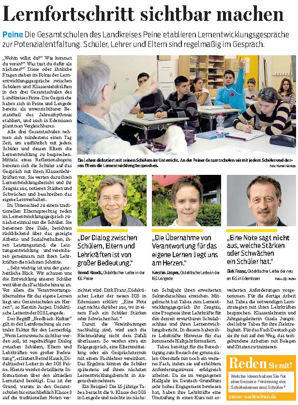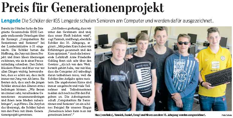 PAZ: "IGS Lengede erhält Preis für Generationenprojekt"
