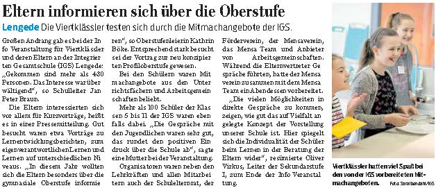 PAZ: "IGS stellte sich interessierten Viertklässlern vor"