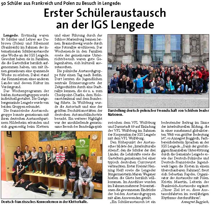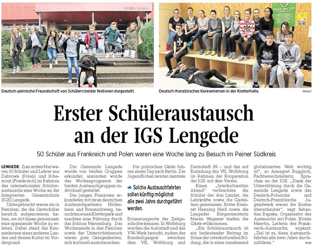 PAZ: "Erster Schüleraustausch an der IGS Lengede"