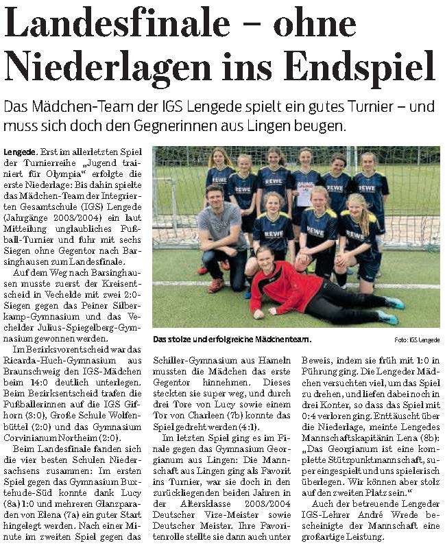 GAL: "IGS Mädchen erreichen ohne Gegentor das Landesfinale"