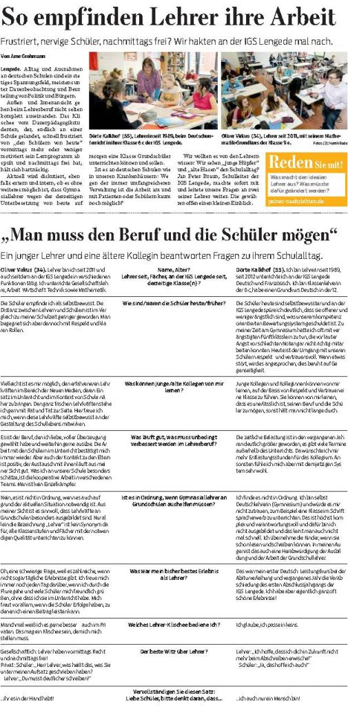 HWSZ: "Schüler-Austausch: Premiere an der IGS"