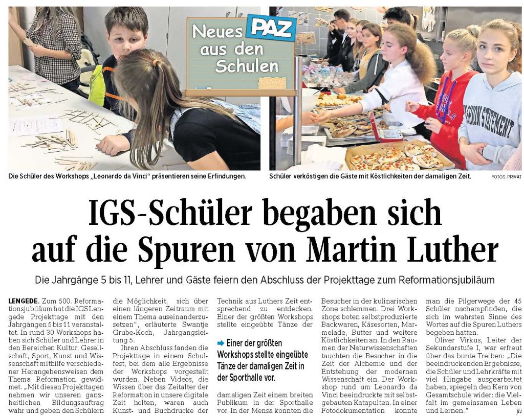 PAZ: "IGS-Schüler begaben sich auf die Spuren von Martin Luther"