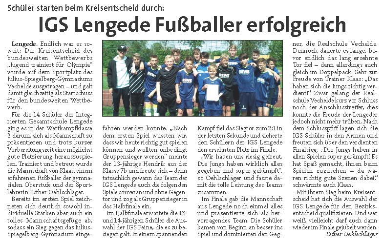 PAZ: "Die Fußballer der IGS Lengede punkten erneut"