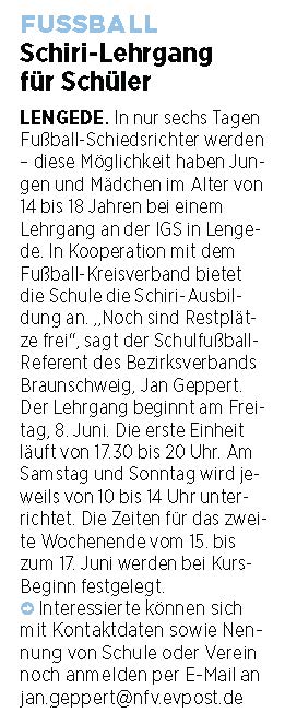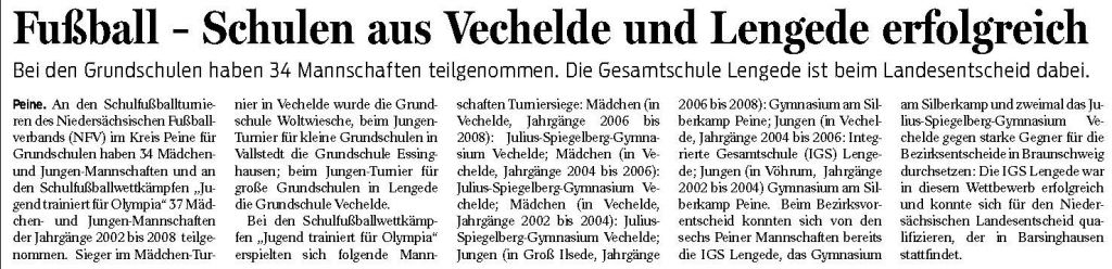 PN: "Fußball – Schulen aus Vechelde und Lengede erfolgreich"