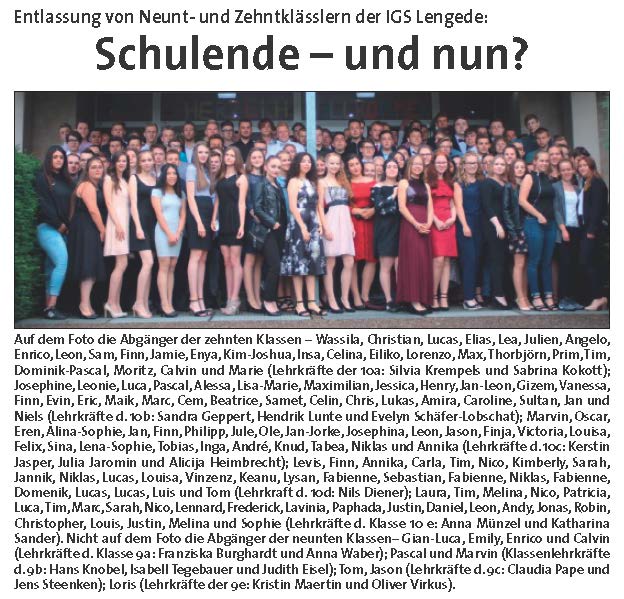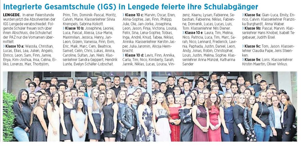 PAZ: "Integrierte Gesamtschule (IGS) in Lengede feierte ihre Schulabgänger"