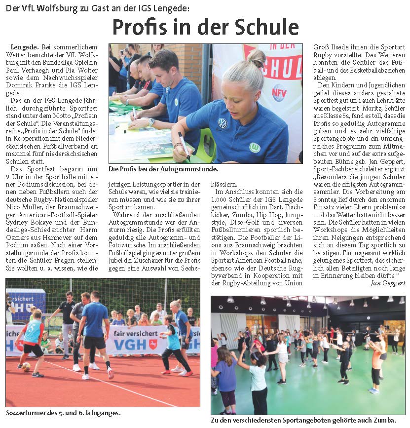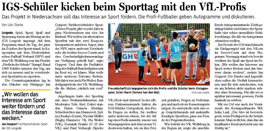 PAZ: "Der VfL Wolfsburg zu Gast an der IGS Lengede"