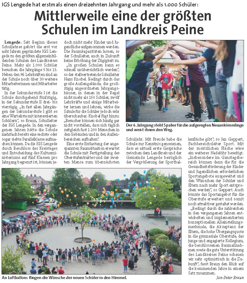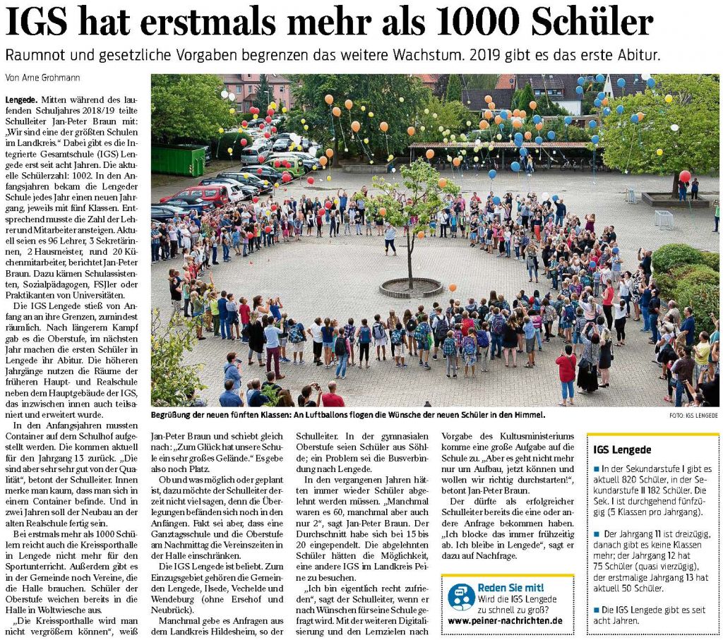 PAZ: "IGS Lengede hat erstmals über 1000 Schüler"