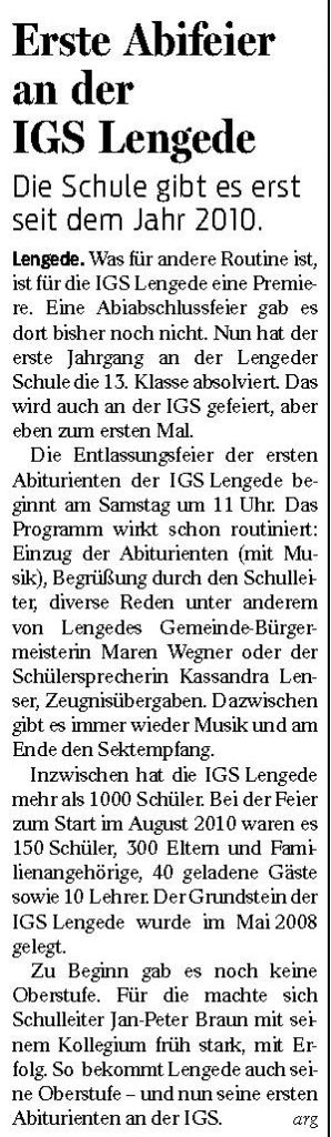 PAZ: "Erster Abitur-Jahrgang verlässt die Lengeder Gesamtschule"
