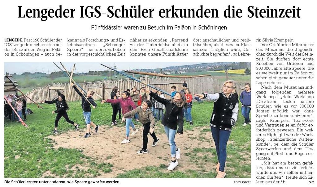 PAZ: "Lengeder IGS-Schüler erkunden die Steinzeit"