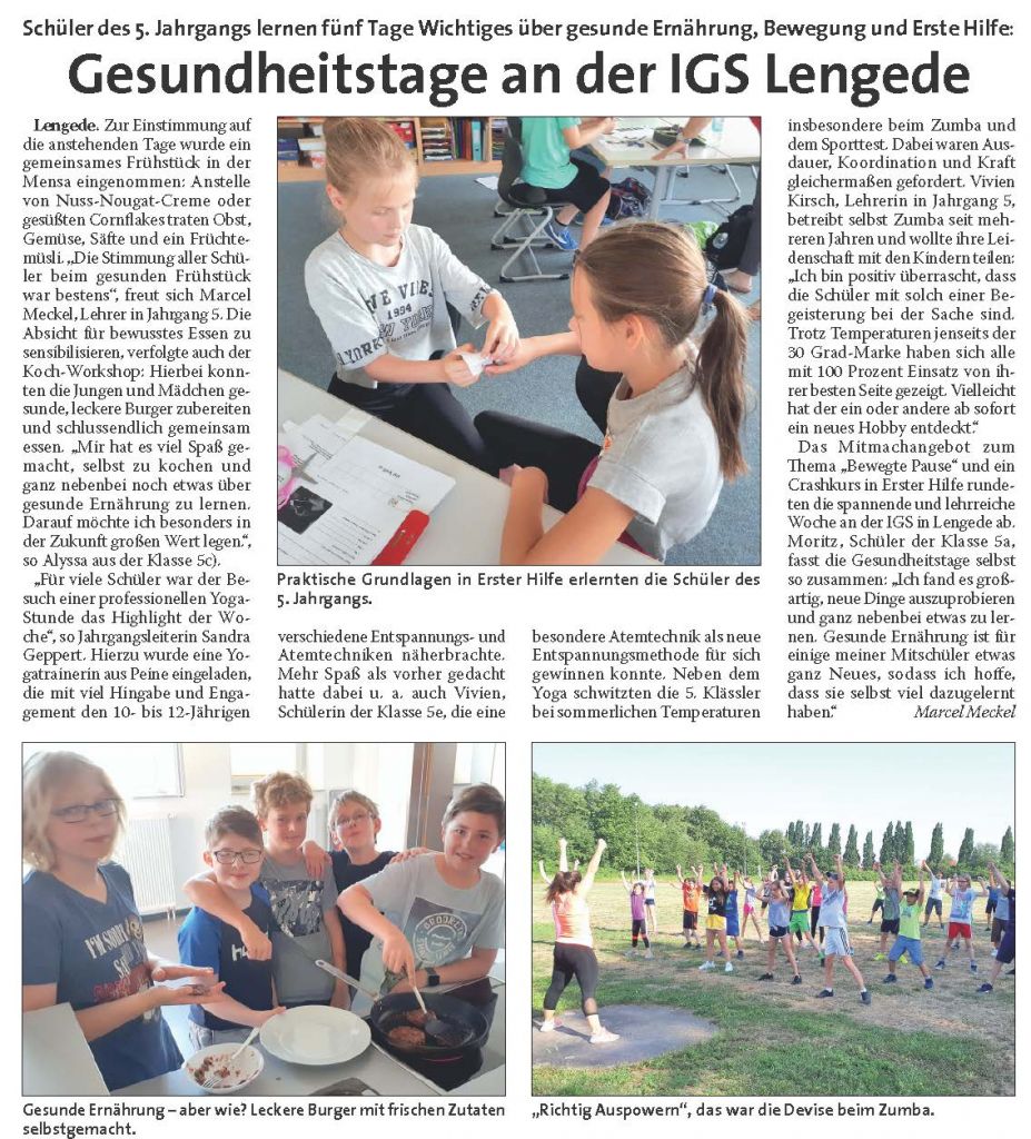 PAZ: "Spannende Gesundheitstage an der IGS in Lengede"