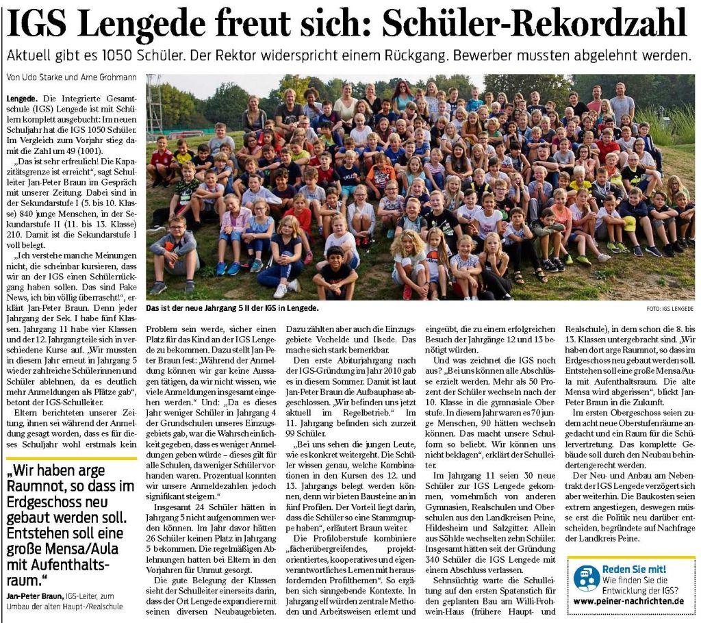 PN: "IGS Lengede freut sich: Schüler-Rekordzahl"