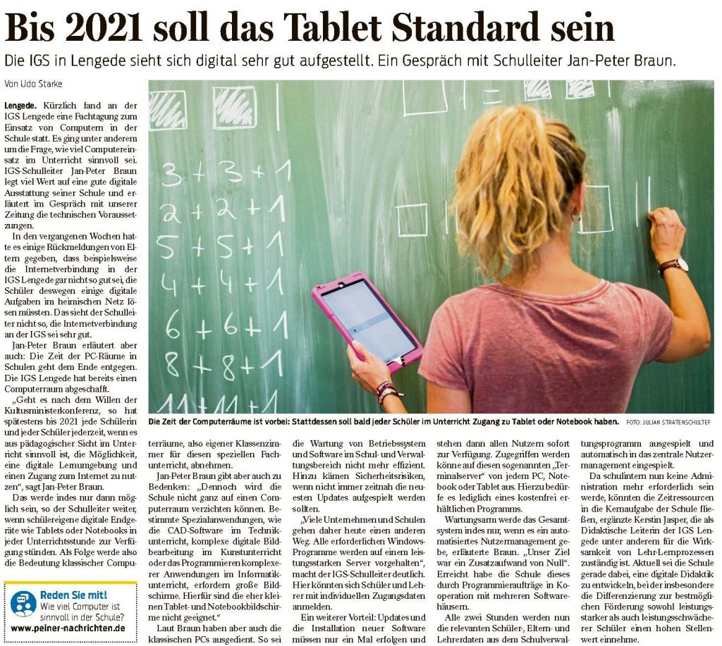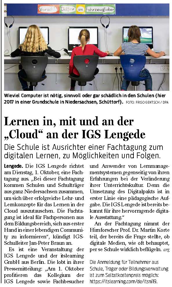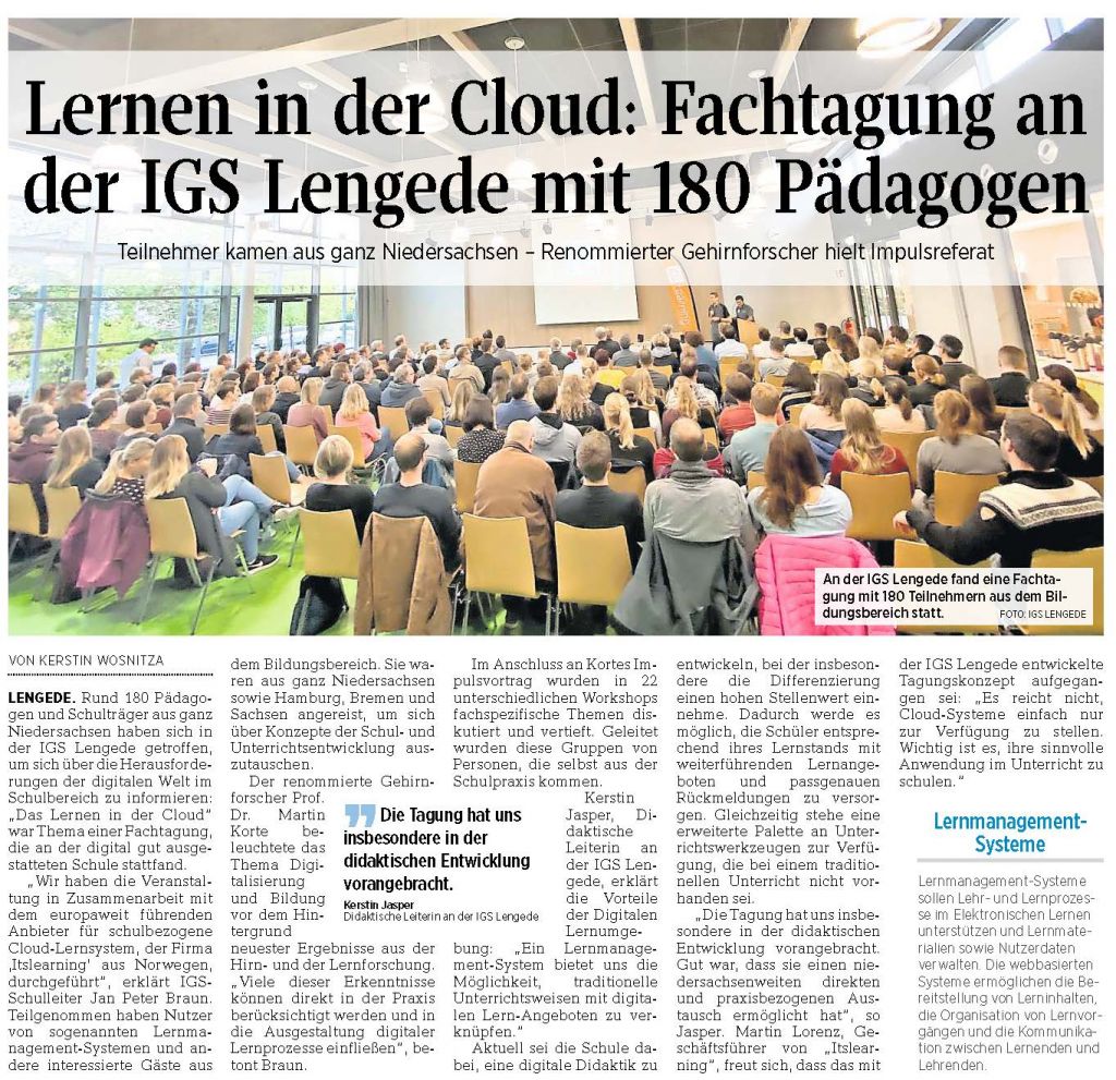 PAZ: "Lernen in der Cloud: Fachtagung an der IGS Lengede mit 180 Pädagogen"