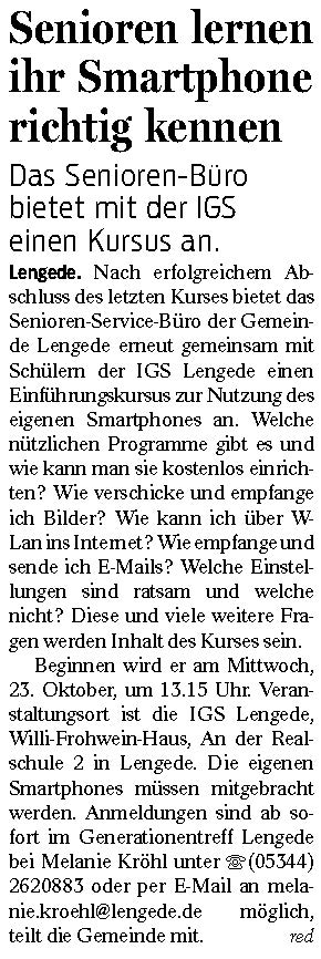 PN: "Senioren lernen ihr Smartphone richtig kennen"