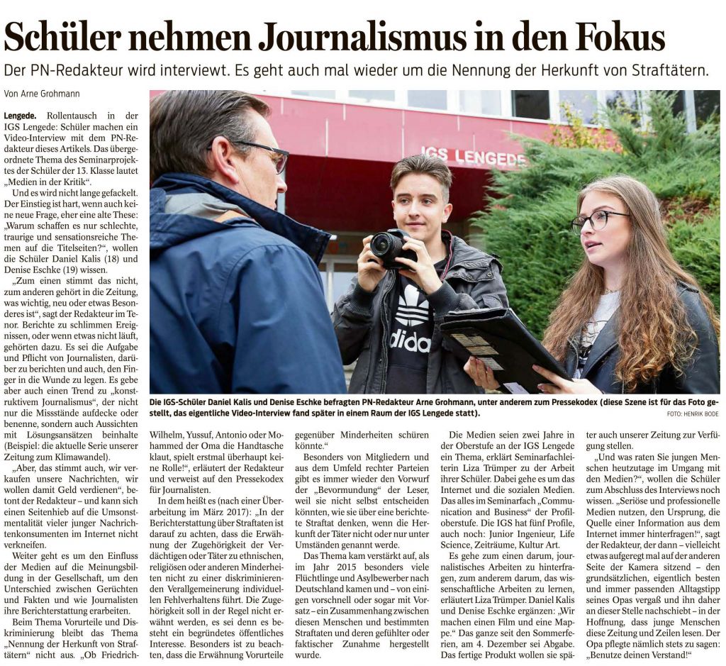 PN: "Schüler nehmen Journalismus in den Fokus"