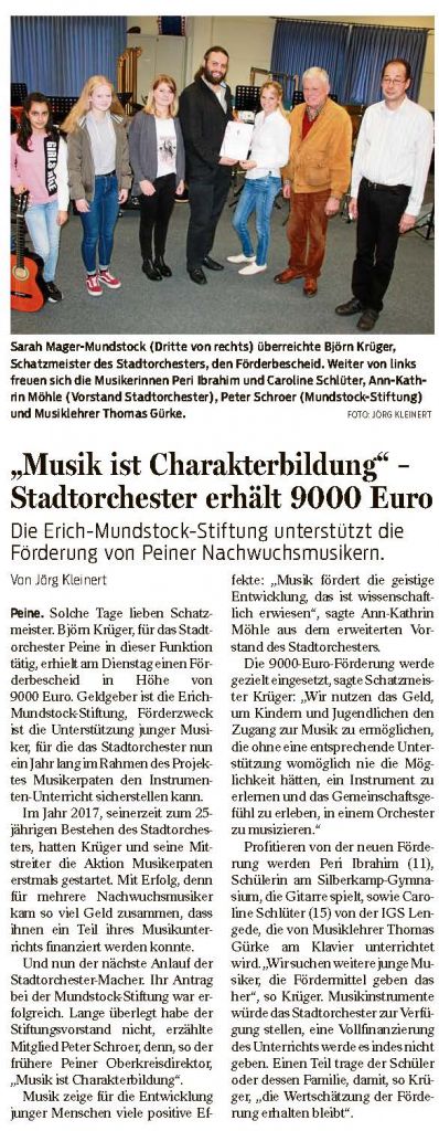 PN: "„Musik ist Charakterbildung“ – Stadtorchester erhält 9000 Euro"