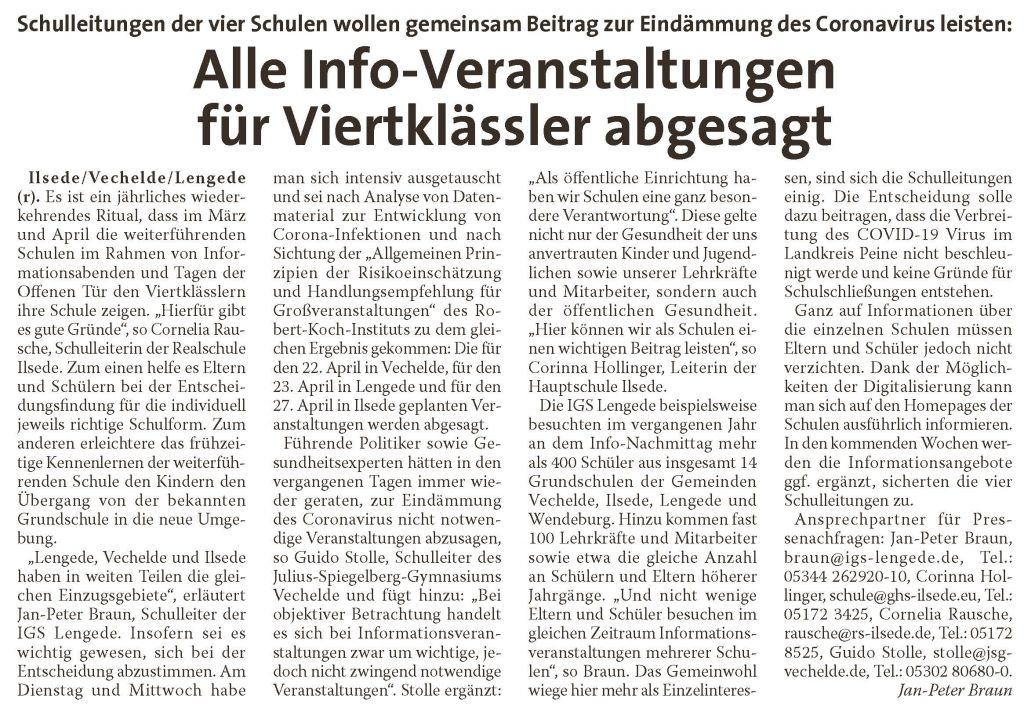 Schulleitungen der vier Schulen wollen gemeinsam Beitrag zur Eindämmung des Coronavirus leisten: