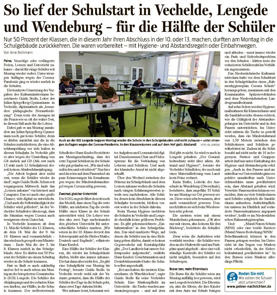 PN: "So lief der Schulstart in Vechelde, Lengede und Wendeburg – für die Hälfte der Schüler"