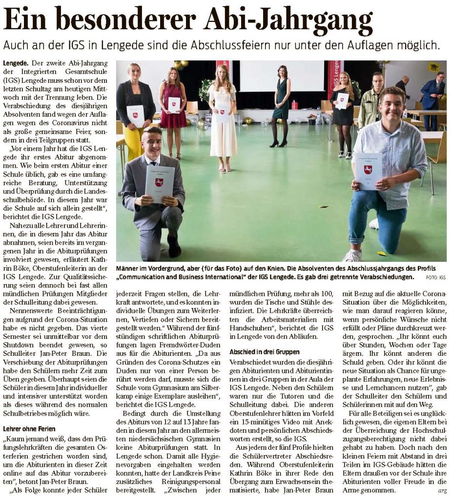 Auch an der IGS in Lengede sind die Abschlussfeiern nur unter den Auflagen möglich.