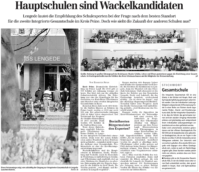 Lengede lautet die Empfehlung des Schulexperten bei der Frage nach dem besten Standort für die zweite Integrierte Gesamtschule im Kreis Peine. Doch wie sieht die Zukunft der anderen Schulen aus?