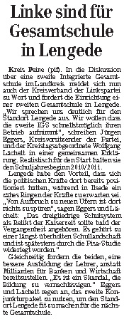PAZ: "Linke sind für Gesamtschule in Lengede"